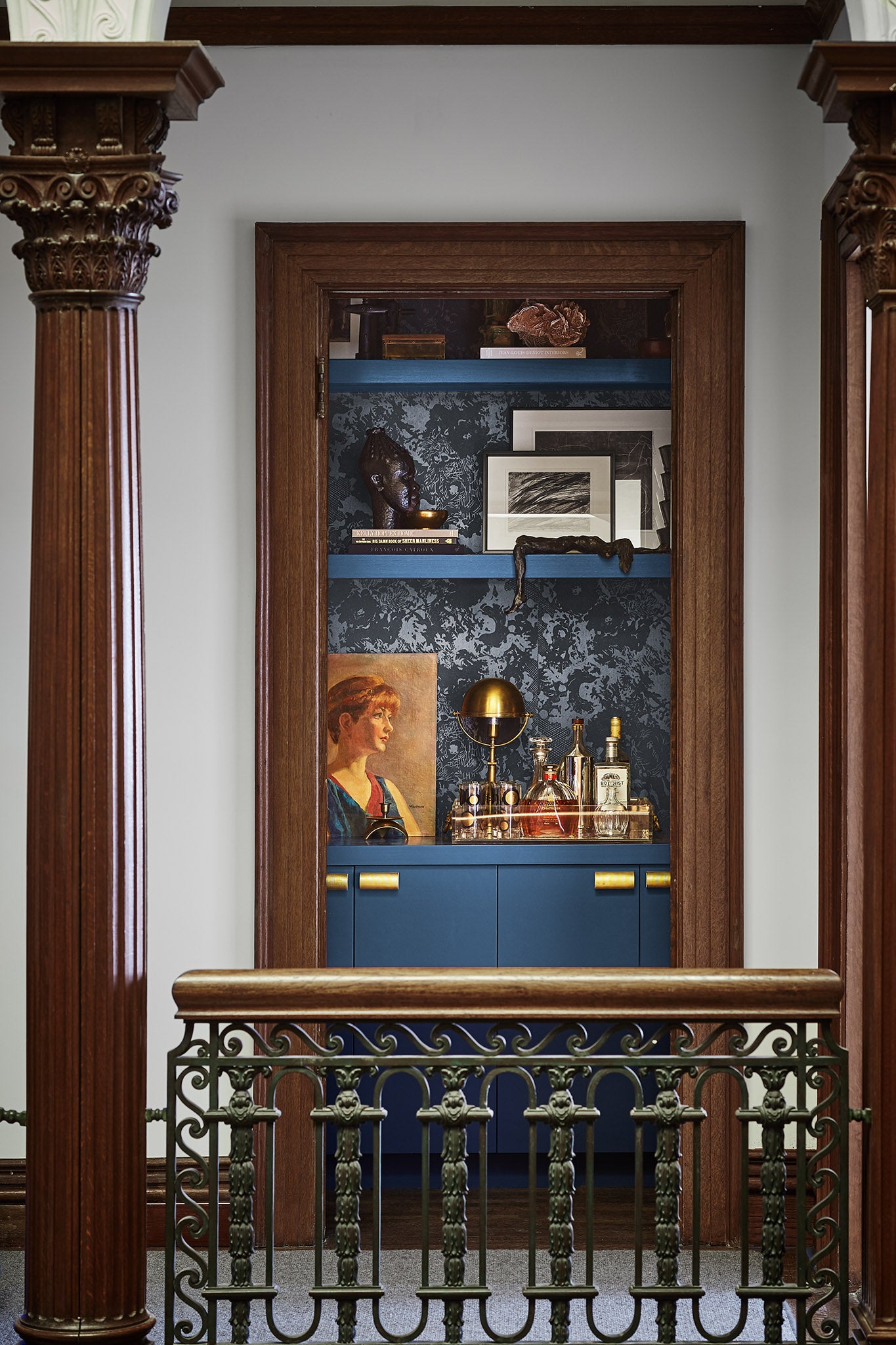 Featuring the very first Hoffman Hardware pulls, Krista Hoffman's Curio Closet for the 2017 SF Decorator Showcase marked the launch of the hardware collection with custom designed perforated brass cuffs. Within the first few days of Showcase opening its doors, Krista knew that the hardware was something special. Photography by Brad Knipstein.